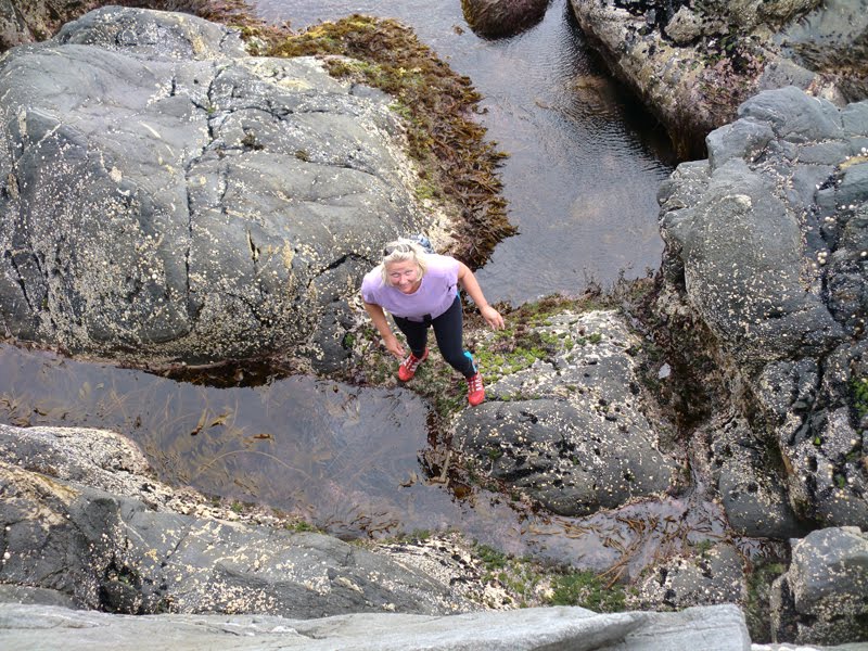 Disse partiene blir langt enklere å gå når en kan gå i fjæra som i dag. Litt glatt, men rur funker som brodder.
